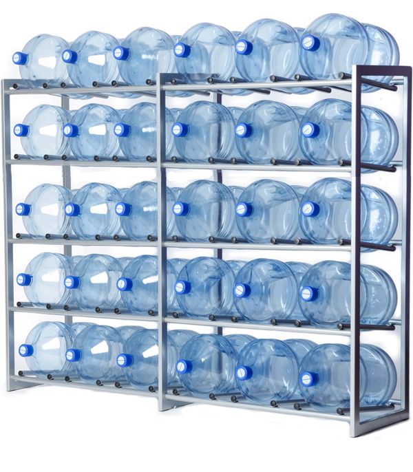 - Предназначен для хранения тридцати 19-и литровых бутылей воды на минимальной площади в офисе или на складе