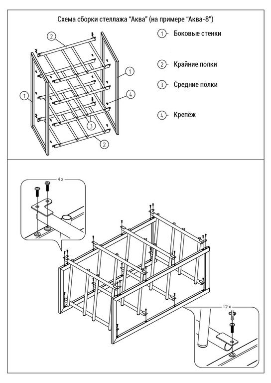 Винты и инструкция по сборке в комплекте. Для сборки нужно лишь прикрутить полки к боковинам крестовой отверткой.